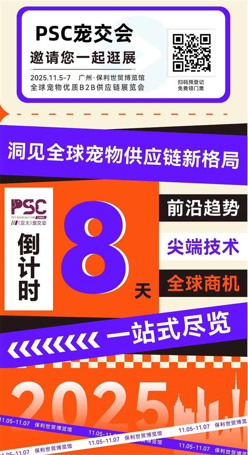 Only 8 days remain until the 2nd PSC Pet Fair, held from November 5th to 7th, 2025 at the Guangzhou Poly World Trade Center Expo!